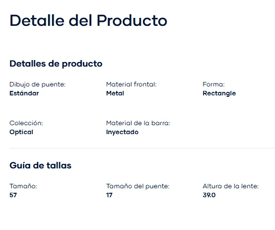 Su forma rectangular aporta una apariencia sobria y profesional, ideal para uso laboral y cotidiano. El frontal en metal ofrece durabilidad y elegancia, mientras que las varillas inyectadas proporcionan ligereza y confort durante largas jornadas de uso.
